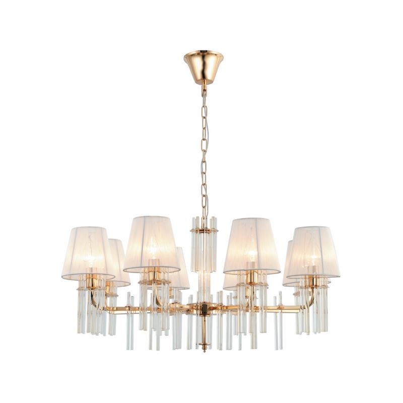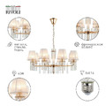 <p>Цвет люстры Lilith - французское золото - теплый и уютный. Лаконичные формы арматуры подходят для современных интерьеров, стремящихся к минимализму. Плафоны люстры из прочной прозрачной ткани хорошо пропускают свет. Люстры на потолок Rivoli Lilith c 8 плафонами освещают площадь до 24 м2. Люстры под 8 ламп Е14 40 Вт подойдут для основного освещения гостиной, спальни, детской, кабинета, квартиры-студии. Декоративные элементы отличаются выверенной формой, простотой и высокой прозрачностью под хрусталь. Люстры в спальню Lilith Rivoli помогут создать интерьер в классическом стиле, в замковом стиле, в стиле модерн, эклектика. Идеальны для загородного дома, холла гостиниц, ресторанов.</p>