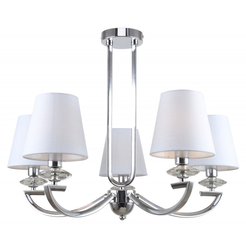 <p>Люстру под 5 ламп стоит купить в небольшую гостиную, спальню, детскую, в кабинет. Светлая классическая люстра хорошо будет смотреться в загородном доме. Данная люстра на потолок освещает площадь 15 м2. Дизайнерские люстры потолочные Rivoli Alice создают в помещении лёгкую воздушную атмосферу и прекрасно рассеивают свет. Плафоны обтянуты прочной абажурной тканью: хоть и белые, но не будут пачкаться и собирать пыль. Арматура люстры трендового цвета хром прекрасно сочетается со светлыми плафонами и прозрачными хрустальными деталями.</p>