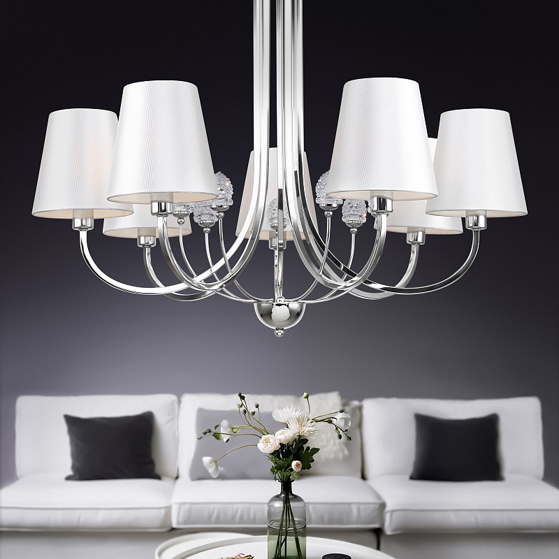 <p>Данная металлическая люстра на штанге с 7 белыми тканевыми плафонами (арт. 2068-307) освещает площадь до 21 м2. Коллекцию дополняют люстры потолочные под 5 ламп (арт. 2068-305) и бра (арт. 2068-401). Цвет коллекции – хром. Дизайн минималистичный, современный, без обилия декора. Ткань плафонов легко очищать от пыли в ходе стандартной влажной уборки. </p>