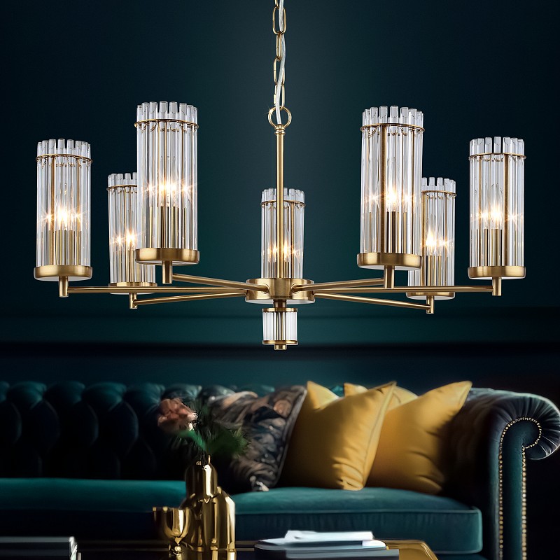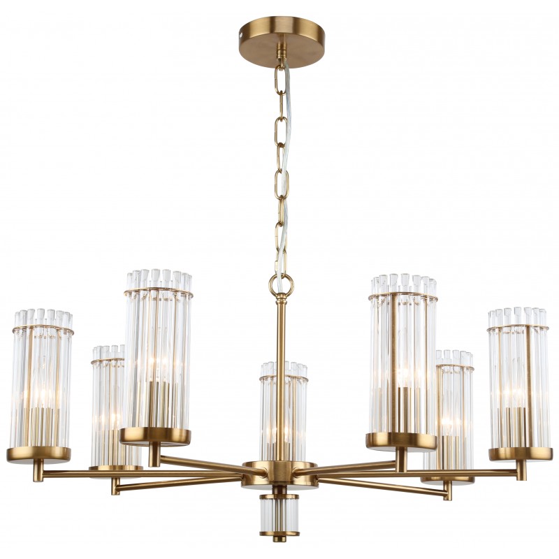 <p>«Фишки» коллекции от итальянских дизайнеров: стеклянные плафоны из прозрачных трубочек, минималистичный золотистый корпус цвета латуни, декорированный эстетичной цепочкой подвес. Высоту подвешивания люстры можно регулировать при монтаже, что делает эту люстру классическую универсальной на любой потолок.</p>