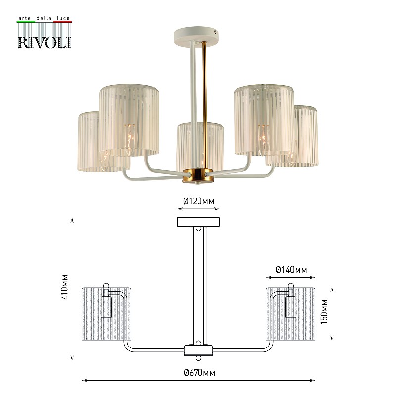 2088-305 Люстра Rivoli Evonne 2088-305 5 х Е14 40 Вт классика