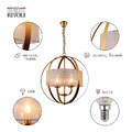 <p>Люстра потолочная Rivoli Irmingard (арт. 2140-205) выполнена в стиле скандинавский шик. Изготовлена из легкого качественного металла и надежной абажурной ткани. Цвета люстры - сочетание белого и золотого. Подвесные люстры Irmingard дают возможность регулировки высоты. В полупрозрачном тканевом абажуре эффектно смотрятся источники света, особенно лампы с колбами-свечами. Люстра на потолок Irmingard от итальянского бренда Rivoli применяется с 5 лампочками Е14 мощностью 40 Вт. Освещаемая площадь люстры - 15 м². Эта красивая необычная люстра станет прекрасным решением в гостиную. Люстра Rivoli Irmingard поможет создать стильный интерьер в спальне. Она сочетает в себе великолепие и уют.</p>