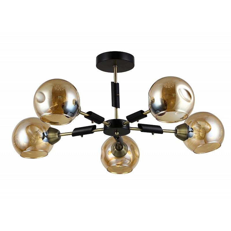 Описание | <p>Rivoli Desma 5-рожковая люстра на потолок, созданная в стиле модерн. Изготовлена из прочного металла и красивого тонированного стекла. Корпус имеет стойкое гальваническое покрытие, которое сохраняет эффектный внешний вид этой люстры на долгие годы.</p><p>Люстры потолочные Desma от итальянского бренда Rivoli отличает минималистичная арматура благородного оттенка античной бронзы. Рожки дополнительно оформлены металлическими декоративными трубками черного цвета. Пять стеклянных плафонов с дизайнерским рельефом делают подвесные люстры Rivoli Desma оригинальными и запоминающимися. Такие люстры стоит купить в современную гостиную, спальню, на кухню, в квартиру-студию или загородный дом. Они выглядят одновременно сдержанно и ультрамодно. </p><p>Мягкое теплое тонирование круглых плафонов люстры Desma помогает создать в комнате уютную расслабляющую атмосферу. Пять ламп Е14 мощностью 40 Вт равномерно осветят площадь от 15 м². Эта модная люстра на пот |
