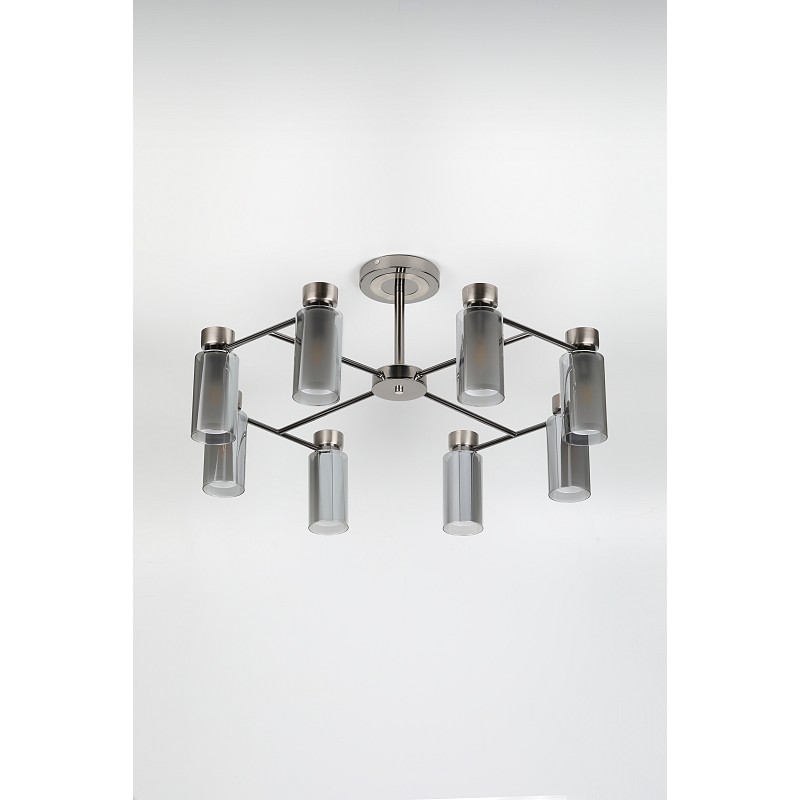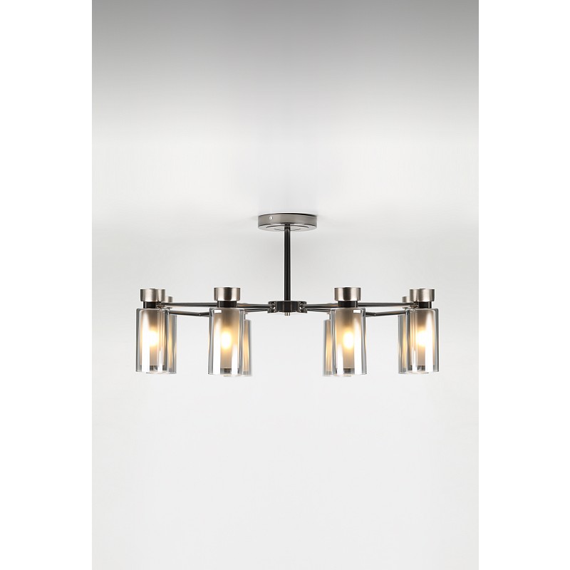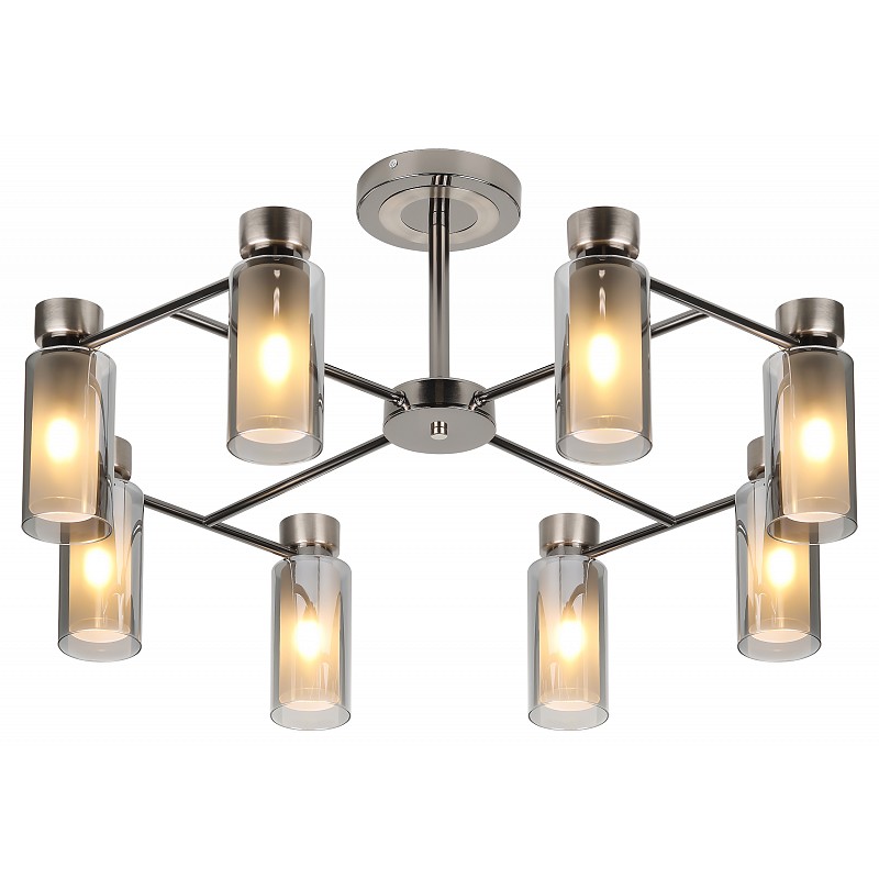 <p>Металлический корпус большой 8-рожковой люстры Rivoli Klara окрашен в оттенки никель сатин и черный жемчуг. Эти красивые и практичные люстры станут идеальным решением на потолок комнат в стиле минимализм, лофт, модерн, классика. Их арматуру отличают выверенные геометричные формы.</p><p>Люстры потолочные Klara от итальянского бренда Rivoli имеют оригинальные двойные плафоны. Лампы Е14 мощностью 15 Вт находятся в двух цилиндрах из белого стекла и из тонированного дымчатого. Такое решение одна из интересных "изюминок", делающих дизайнерские люстры Klara яркими и запоминающимися.</p><p>Выбирая люстры в гостиную, остановитесь на данной модели. Эргономично расположенные лампы создадут отличный световой поток, освещая площадь 24 м². Rivoli Klara универсальный вариант люстры в просторную спальню или люстры на кухню. Благодаря стойкому гальваническому покрытию современные люстры Klara будут великолепно выглядеть на протяжении в