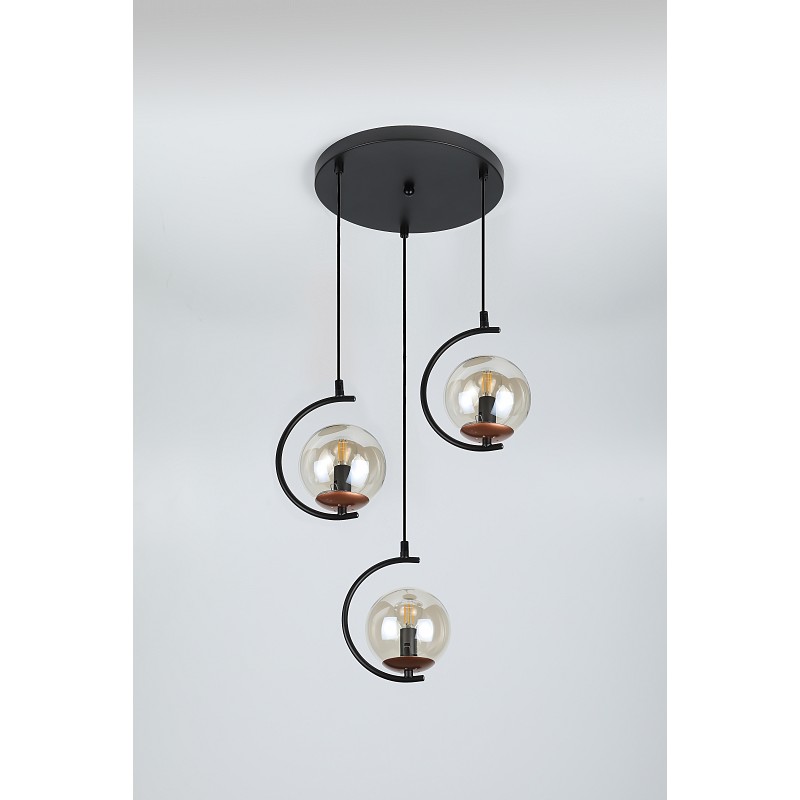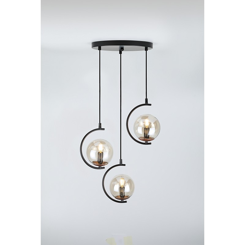 <p>Подвесной светильник Rivoli Marlen с 3 оригинальными плафонами будет прекрасно смотреться в интерьерах модерн, ретро, классика. Если вы ищете качественные и красивые подвесные светильники для кухни, гостиной или загородного дома, посмотрите фото данной модели. </p><p>Круглые тонированные плафоны закреплены на креативных держателях в форме полумесяца. Своим расположением лампочки Е14 мощностью 40 Вт напоминают свечи в подсвечниках. Такие подвесные светильники-люстры станут яркой деталью пространства.</p><p>Эффектный внешний вид далеко не единственное преимущество данных подвесных светильников на тросах. Высота подвесов регулируется, чтобы вы могли заказать Rivoli Marlen в комнату с любыми потолками. Арматура имеет стойкое гальваническое покрытие трендовых цветов черный корпус с медными деталями. Эти подвесные светильники всегда будут выглядеть новыми. Разместите их над столом, в зоне отдыха или по центру комнаты. Осветят 9 м².</p><p