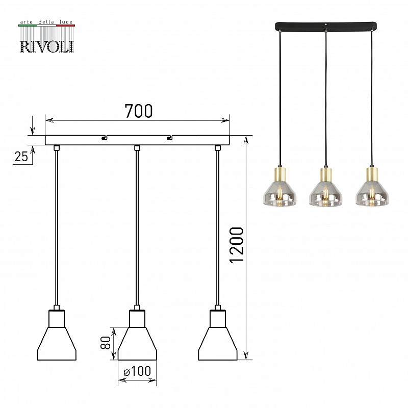 3118-303 Светильник подвесной (подвес) Rivoli Kassandra 3118-303 3 х Е14 40 Вт модерн потолочный, 5055398640906