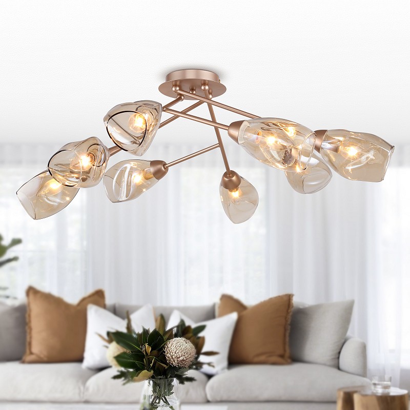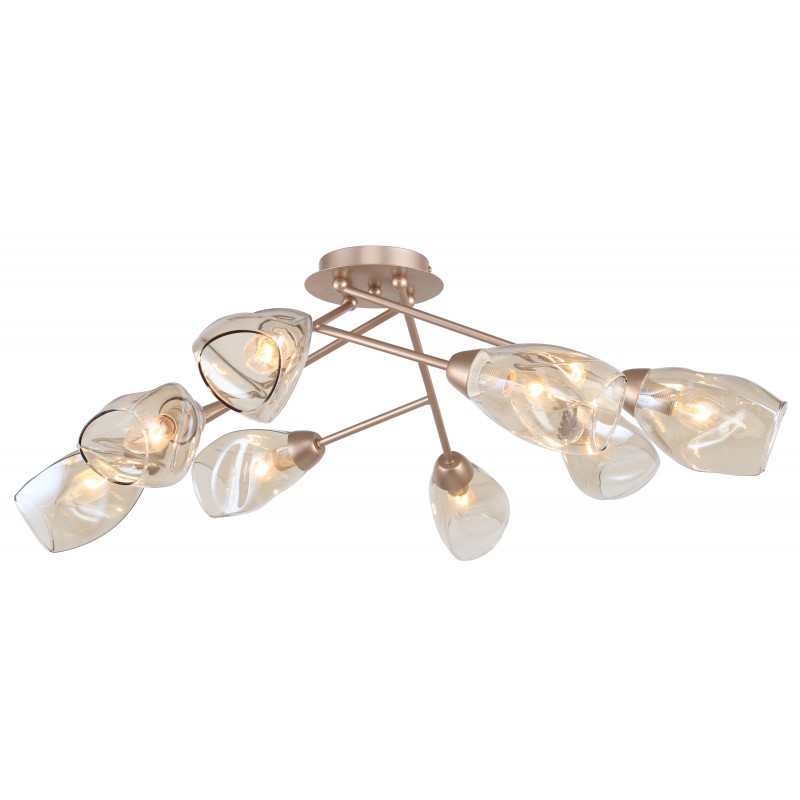 <p>Rivoli Carrie (арт. 3124-308) – люстра потолочная в цвете белое золото, стиль модерн. Количество плафонов – 8. Освещаемая площадь люстры – до 24 м2. Плафоны большой люстры Carrie на потолок изготовлены из стекла, имеют эффектную фигурную форму и слегка затонированы в мягкий тёплый оттенок. Рожки дизайнерской люстры Rivoli Carrie оформлены по мотивам веток дерева или растения с бутонами. Цветочный растительный дизайн – хорошее решение для жилой комнаты. При этом люстры Carrie довольно минималистичны, не утяжеляют интерьер лишним декором.</p>