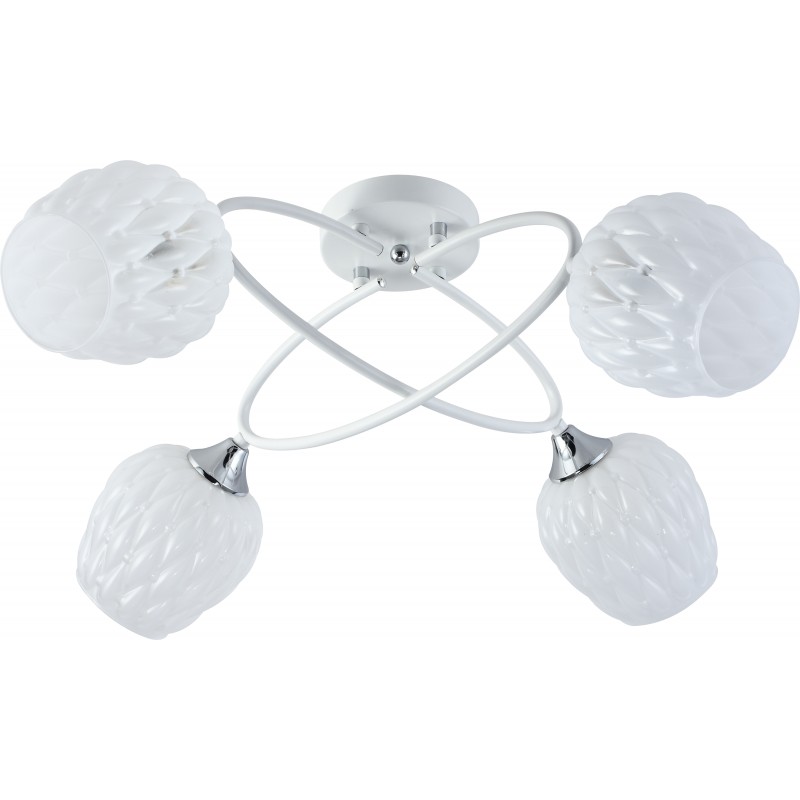 <p>Rivoli Hettie (арт. 3136-304) - люстры итальянского дизайна, отличающиеся оригинальной металлической арматурой и фигурными плафонами из белого матового стекла. Овальные перекрестные держатели плафонов окрашены в базовый белый цвет, универсальный для любых интерьеров. Люстры потолочные Hettie Rivoli выполнены в стиле модерн. Стеклянные плафоны в классической форме бутонов имеют объемный рисунок с ромбами.</p>