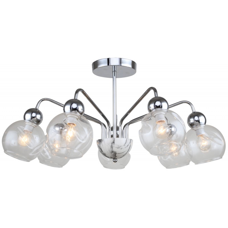 <p>Люстра потолочная металлическая с прозрачными плафонами - Rivoli Dena (арт. 3147-307). Идеальна для освещения площади до 21 м2. Центр люстры украшен декоративным элементом под мрамор. Люстра на потолок Dena от итальянского бренда Rivoli отличается минималистичными формами. Такая современная люстра подойдёт для основного освещения в любой жилой комнате. Чаще всего Rivoli Dena покупают в качестве люстры в гостиную, люстры в спальню, люстры на кухню. Хромированные люстры из металла помогают удачно оформить квартиру после ремонта. Если нужна люстра с меньшим количеством плафонов, рассмотрите модель Rivoli Dena под 5 ламп – арт. 3147-305. Если ищете настенные светильники, в комплект к люстрам есть бра Rivoli Dena – арт. 3147-401. </p>
