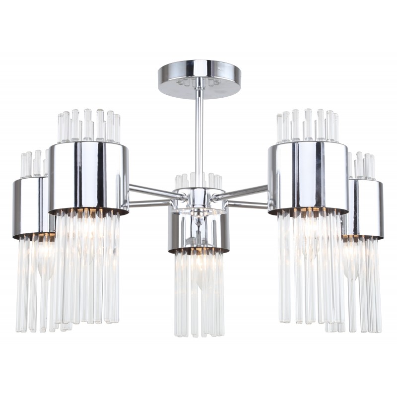 <p>5-рожковая люстра на штанге в цвете хром, с трубчатыми стеклянными плафонами. Люстра потолочная применяется с 5 лампами Е14 мощностью 40 Вт, освещает площадь до 15 м2. Люстра с цилиндрическими плафонами из стекла будет удачно смотреться в гостиной, в спальне, на кухне, в кабинете, в загородном доме. Люстры и светильники коллекции Rivoli Deborah подходят для оформления пространств сегмента horeca – рестораны, кафе, гостиницы. Эти люстры потолочные заказывают в интерьеры театров, концертных залов, фойе общественных пространств. В коллекции Rivoli Deborah: люстра под 5 ламп - арт. 3148-305, люстра под 7 ламп - арт. 3148-307, светильник подвесной - арт. 3148-201, светильник настенный - арт. 3148-401.</p>