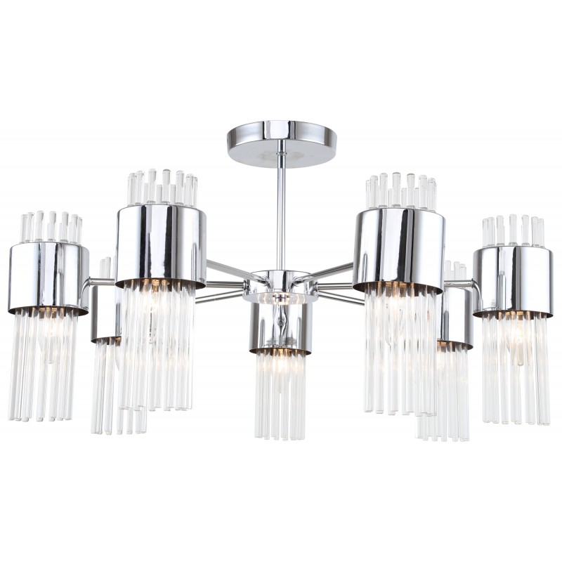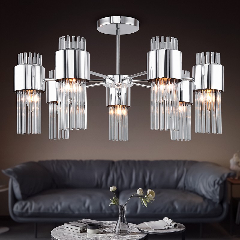 <p>Люстра потолочная на металлической штанге Rivoli Deborah (арт. 3148-307) – современная люстра в стиле модерн для оформления трендовых интерьеров. Плафоны люстры состоят из прозрачных стеклянных трубочек, прекрасно пропускающих свет. Форма плафонов люстры – цилиндр, количество плафонов – 7. Металлический корпус люстры окрашен гальваническим способом в модный цвет хром, который прекрасно смотрится в современных квартирах. Освещаемая площадь данной люстры в гостиную – до 21 м2.</p>