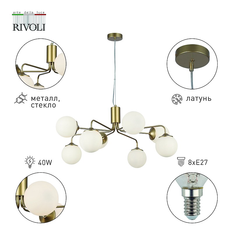 3150-308 Люстра Rivoli Felicity 3150-308 8 х Е27 40 Вт модерн, 5055398677025