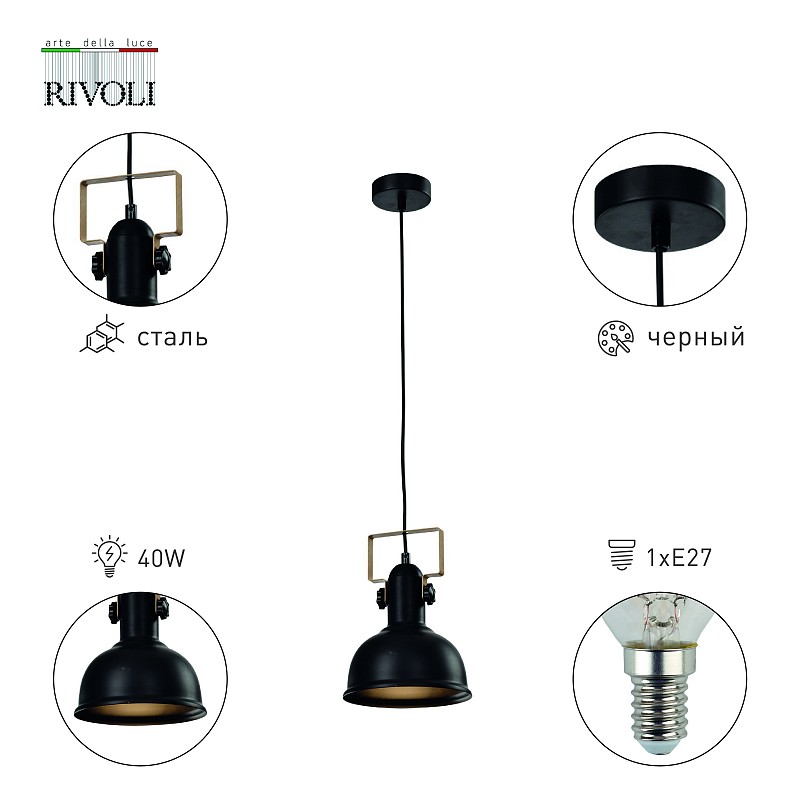 <p>Rivoli Nathalie подвесной светильник из металла, выполненный в эффектном сочетании черного и золотого цветов. Идеальное решение для стиля лофт. Закрытый плафон создает яркий направленный свет. Наклон плафона регулируется и фиксируется дизайнерскими шурупами.</p><p>Высоту потолочных подвесных светильников Nathalie можно изменять в зависимости от параметров потолка и дизайнерских задач.</p><p>Эти подвесные светильники на тросах освещают площадь 3 м². Часто из нескольких штук составляют стильные светотехнические комбинации. Светильник, напоминающий о ретро-освещении фабрик, помогает организовать модный интерьер просто и по доступной цене.</p><p>Рекомендуем купить эти подвесные светильники для гостиной, студии, кухни, спальни, прихожей, загородного дома. Прочный металл корпуса и стойкое гальваническое покрытие делают подвесы Nathalie надёжными и практичными. Это отличный вариант подвесных светильников над столом, барной стойкой, в зо