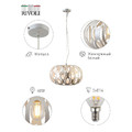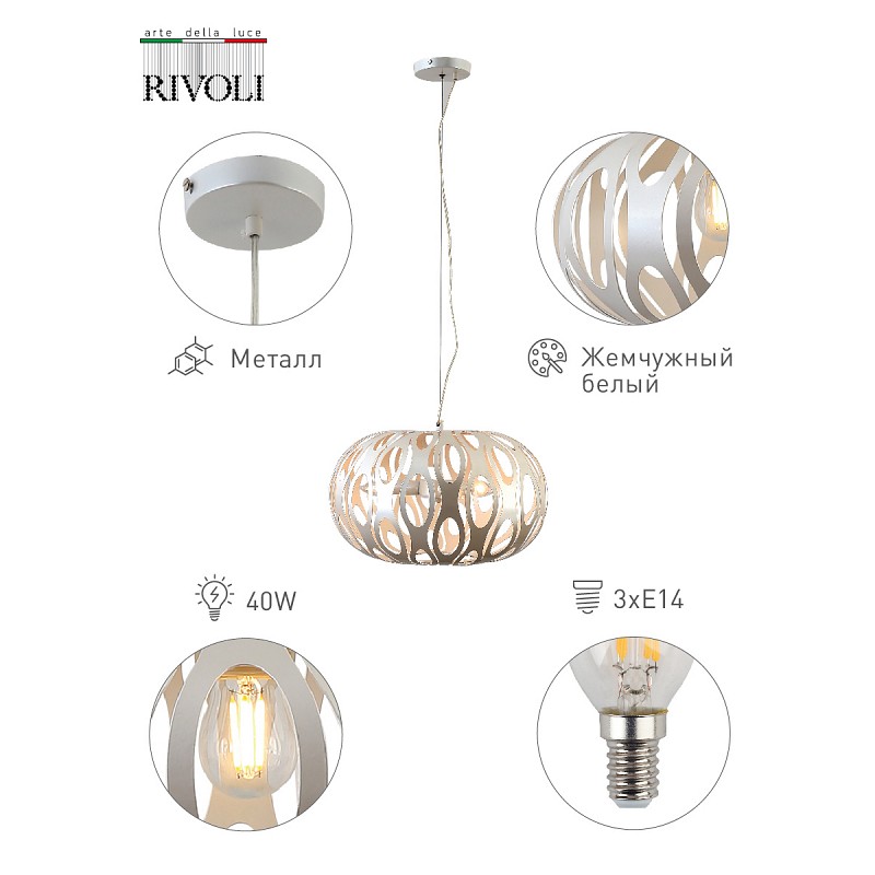 <p>Металлические светильники с уникальной геометрией и благородным жемчужным окрашиванием. Невесомость и воздушность металла создана новой методикой высокоточной лазерной резки. Вы полюбите Rivoli Meike за необычный световой рисунок, который словно по волшебству появится на стенах, потолке, на полу. Эта серия преобразит любой интерьер! Коллекия представлена подвесом на 3 лампы.</p>