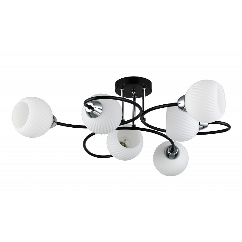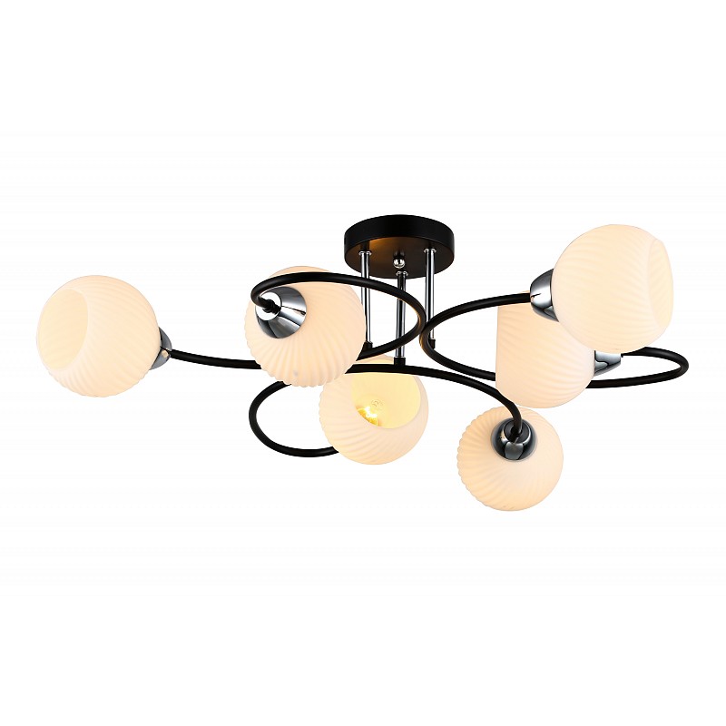 <p>Современные люстры на потолок Rivoli Gisela (арт. 4083-306) с 6 плафонами примечательны стильной игрой контрастов: темный металл корпуса и светлое стекло плафонов. Элементы приобретают гармоничность за счет мягких округлых линий. Люстры потолочные Gisela стоит купить как для квадратных помещений, так и для вытянутых.</p><p>Черная арматура люстры на потолок Gisela дополнена деталями со стойким окрашиванием в цвет хром. Комбинированный металлический корпус уравновешивается белыми стеклянными плафонами с аккуратным рельефом и матовым покрытием. Итальянские люстры Rivoli Gisela хорошо смотрятся в самых разных интерьерах от классического до лофта или минимализма.</p><p>Эти эффектные люстры стоит купить в гостиную, спальню, столовую, на кухню среднего размера около 18 м². Шесть ламп Е27 по 40 Вт качественно осветят такую площадь без дополнительных источников света. Люстры Gisela от Rivoli отлично смотрятся на потолке в сочетании со встраиваемой