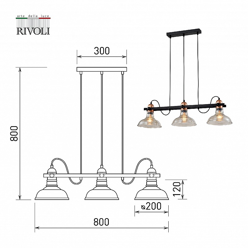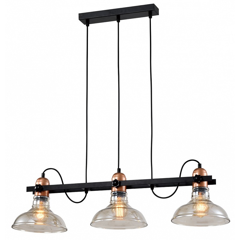 <p>Дизайнерская подвесная люстра Leila (арт. 4093-203) от итальянского бренда Rivoli. Подвесные люстры Rivoli Leila под 3 лампы Е27 40 Вт представляют собой 3 стеклянных плафона в ретростилистике, объединенных металлическими рейками черного матового цвета. Прозрачные плафоны люстры имеют легкое теплое тонирование для смягчения света. Стильные патроны люстры с окрашиваем под медь крепятся к арматуре декоративными лофт-фиксаторами. Длину тросов легко отрегулировать, когда подвесные люстры Leila Rivoli монтируются на потолок. </p>