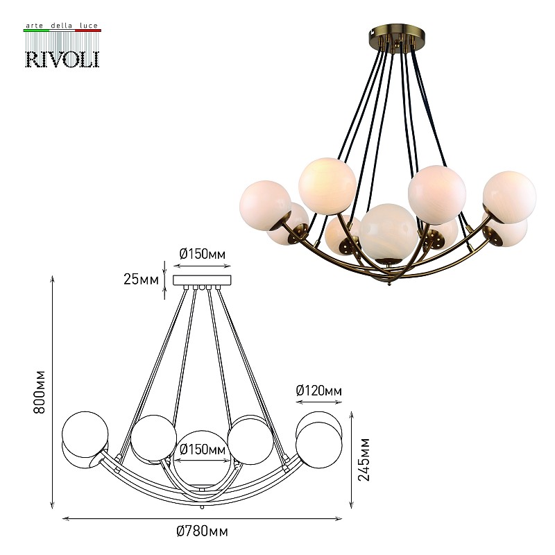 4099-309 Люстра Rivoli Dina 4099-309 9 х Е14 40 Вт дизайн, 5055398676530