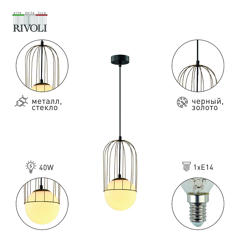 <p>4107-201 Rivoli Светильник подвесной (подвес) Bethany 1 * Е14 40 Вт дизайн</p>
