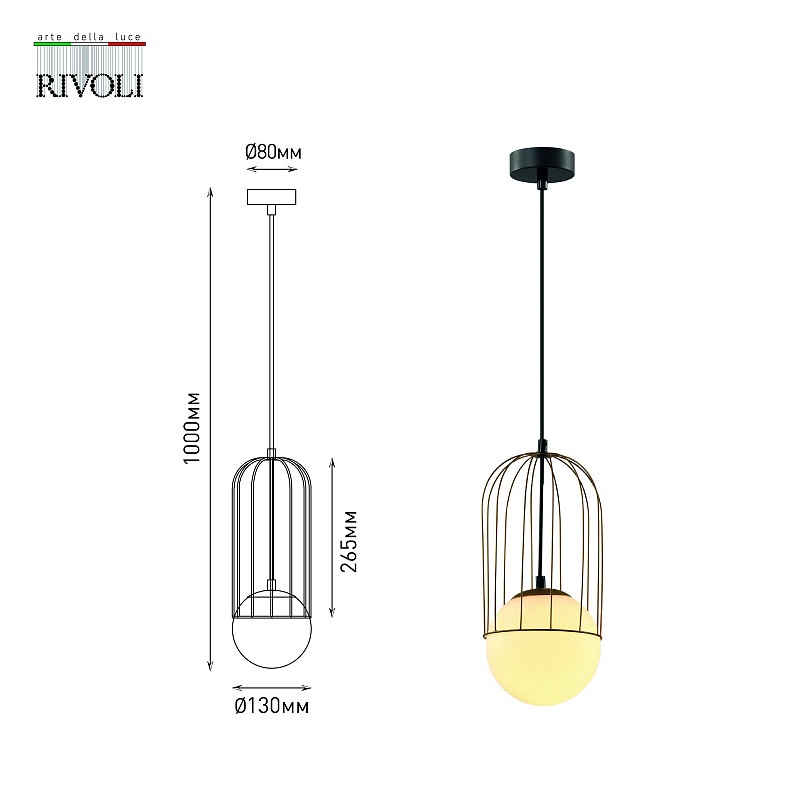 4107-201 Светильник подвесной (подвес) Rivoli Bethany 4107-201 1 * Е14 40 Вт дизайн потолочный шар, 5063079023771
