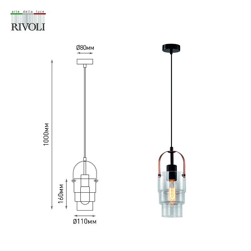 4110-201 Светильник подвесной (подвес) Rivoli Christina 4110-201 1 * Е27 40 Вт дизайн потолочный, 5063079023832