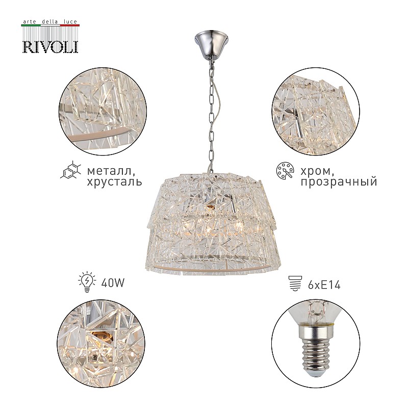 <p>Подвесные люстры Rivoli Marthilde (арт. 4141-208) имеют эффектный абажур из дизайнерского хрусталя. Прозрачные хрустальные элементы с декоративным современным орнаментом расположены в два яруса. Для люстры стоит купить 6 ламп Е14 мощностью 60 Вт. Она отлично осветит 18 м². Высококачественный хрусталь повышенной прозрачности обеспечит много света!</p>