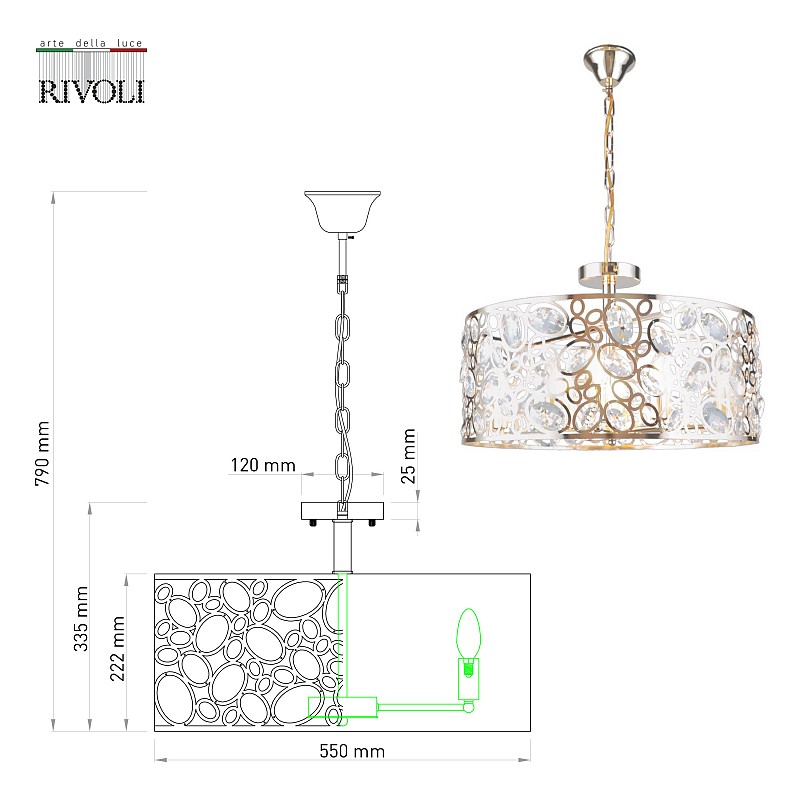 <p>Высота люстры Rivoli Reina на подвесе регулируется. Можно заказать ее для помещений с любыми потолками. Такие подвесные люстры станут хорошим решением для размещения над столом, барной стойкой, рабочей столешницей, в зоне отдыха или чтения. Они освещают площадь 24 м² и используются с лампами Е14 40 Вт. Это один из самых распространенных источников света, поэтому вы без труда подберете лампочку для подвеса Reina.</p>