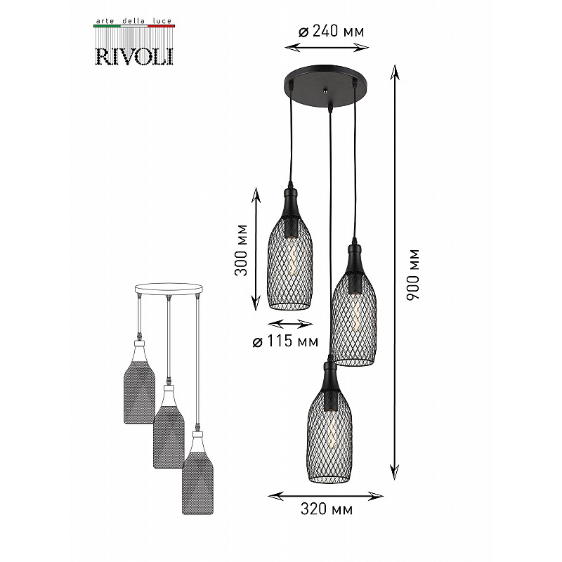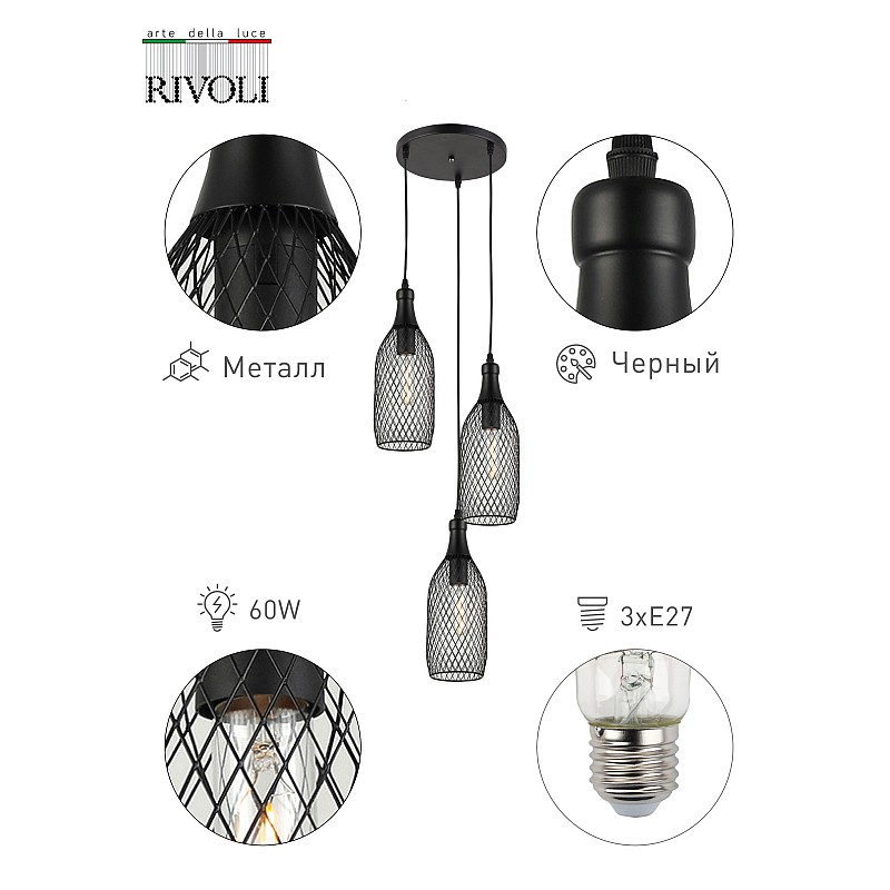 5074-203 Светильник подвесной (подвес) Rivoli Martina 5074-203 3 х E27 60 Вт лофт - кантри, 5056396201601