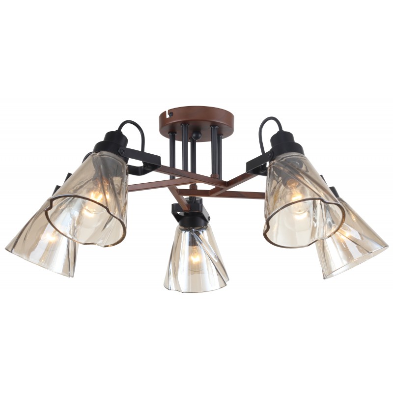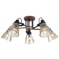 <p>Люстра потолочная Rivoli Clarissa (арт. 5098-305) полностью соответствует популярному стилю лофт-кантри. В числе дизайнерских решений, применённых для данной люстры: рожки с металлическими скобами, декоративно выпущенный провод, сочетание металла и тёмного дерева в окрашивании корпуса люстры, тонировка стекла. Люстра на коротких металлических штангах эффектно выглядит на потолке, идеально подходит для невысоких потолков и потолков средней высоты. Освещаемая площадь данной люстры с 5 стеклянными тонированными плафонами – до 15 м2.</p>