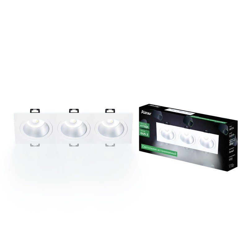 Наименование для 1С | Свет-к встр-й, ARTIN, прямоуг 260х94х25мм монтаж отверст 75х230мм 3х GU5.3 Al черный 51427 5, Ritter |