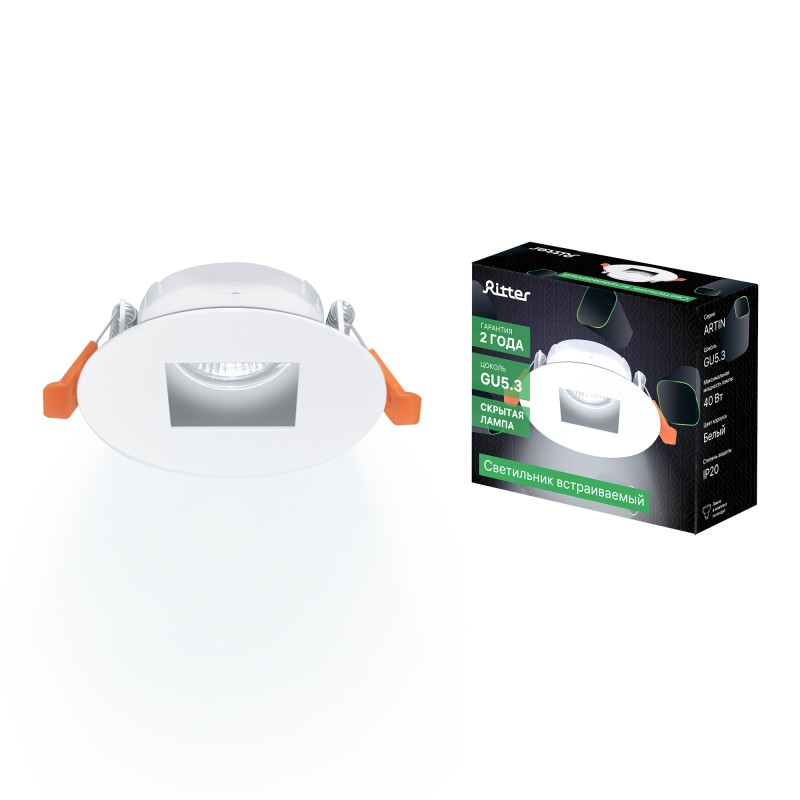Наименование для 1С | Свет-к встраив-й ARTIN, круг, 87х87х35мм, монтажное отверстие 75х75мм GU5.3 Al белый 51431 2, Ritter |