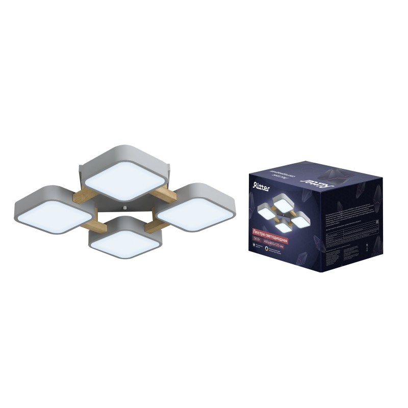Наименование для 1С | Люстра потолочн светодиодн, SCANDIA, 3 режима 460х460х120мм 56Вт 19м² серый/дерево, 52073 3, Ritter |