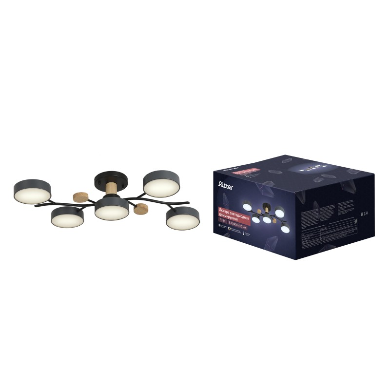 52080 1 Люстра потолочная светодиодная диммируемая, SCANDIA, с ДУ, 830х400х160мм, 70Вт, 24м², серый/черный/ дерево, 52080 1, Ritter, 4008297520801