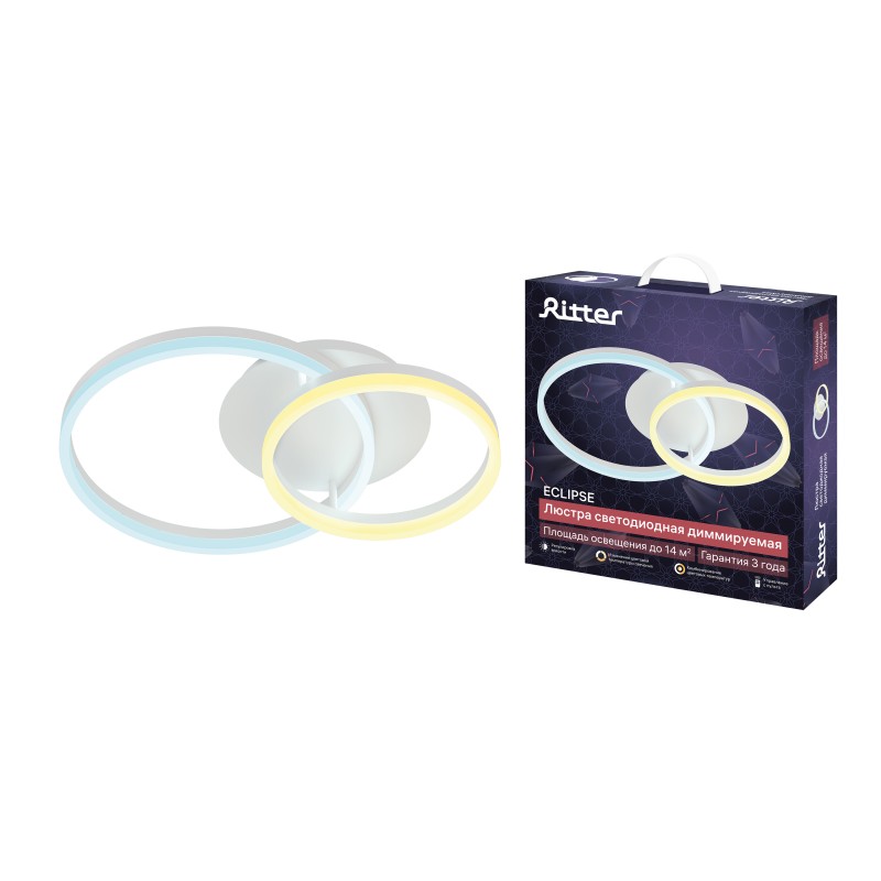 Наименование для 1С | Люстр потолоч светодиод димм, ECLIPSE, с ДУ 3 режима 526х400х125мм 56Вт 14 м² белый, 52082 9, Ritter |
