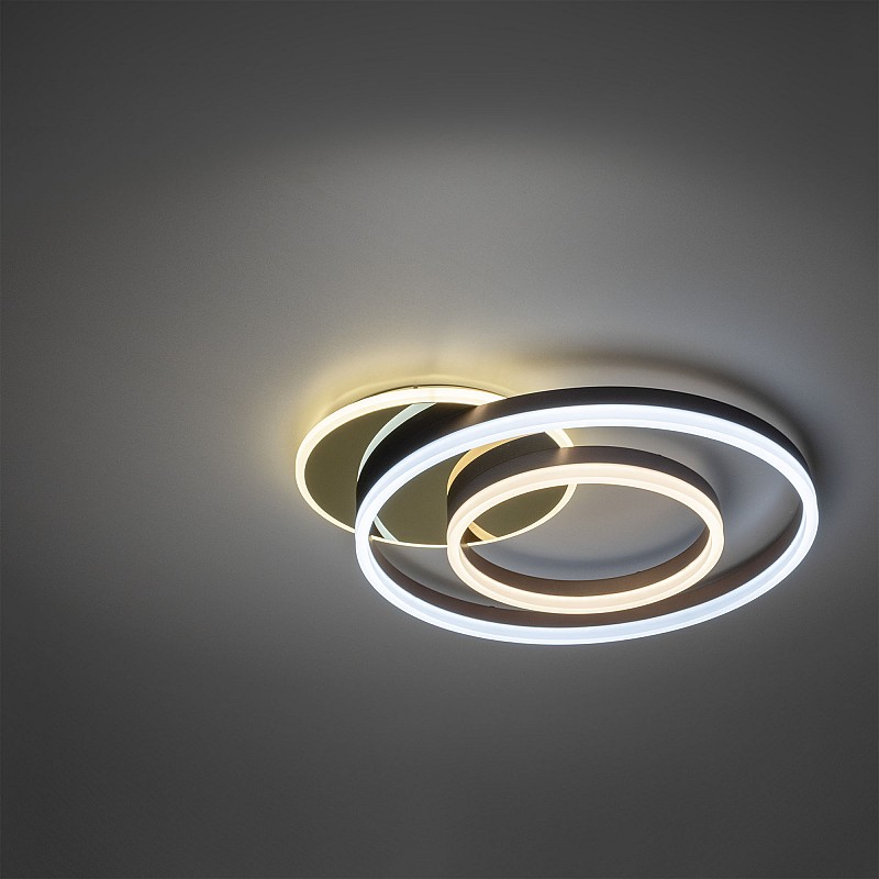 52087 4 Люстра потолочная светодиодная диммируемая, ECLIPSE, пульт ДУ, 3 режима, 500х580х80мм, 96Вт, 2700К+6400К / 4200К / 6400К+2700К, 24м², белый/коричневый/золотой, 52087 4, Ritter, 4066231520874
