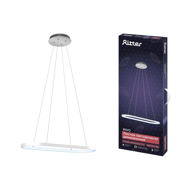 Наименование для 1С | Люстра потолоч светодиод диммир, RIVO, ДУ 3 режима 800x300x1200мм 62Вт 15м² белый, 52092 8, Ritter |