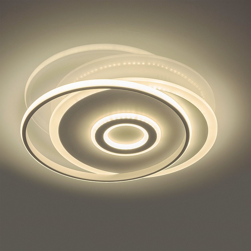 52096 6 Люстра потолочная светодиодная диммируемая, RIFLESSO, с ДУ, 3 режима, 480х410х60мм, 120Вт, 2700К/4200К/6400К, 48м², белый, 52096 6, Ritter, 4066231520966