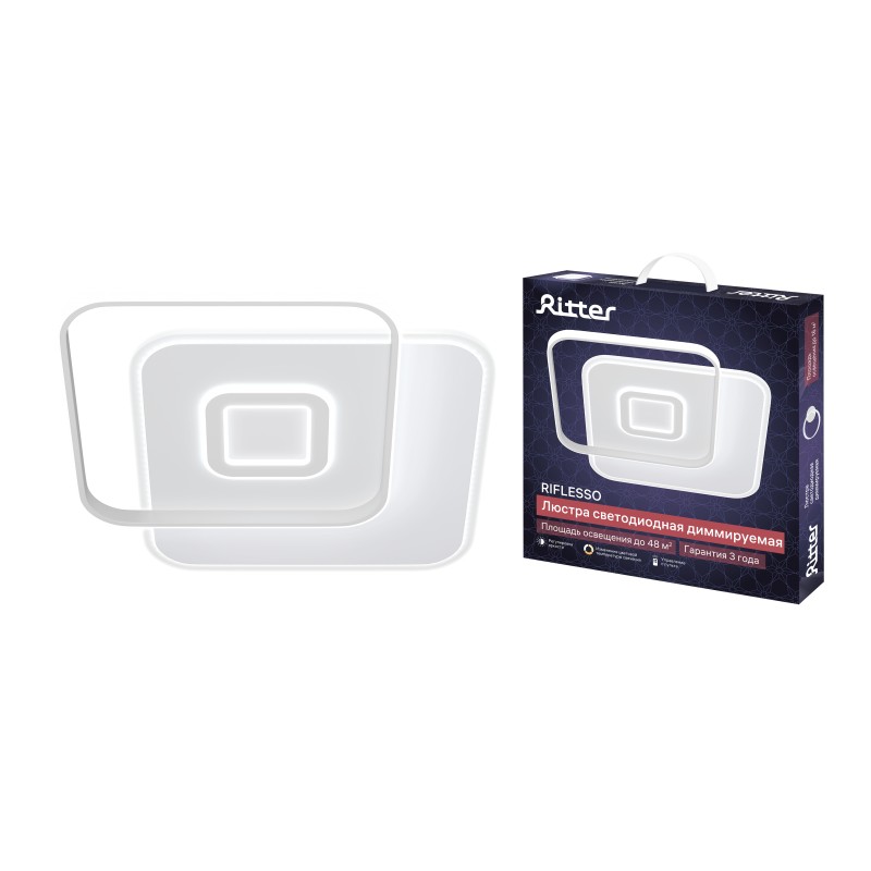 Наименование для 1С | Люстр потолоч светодиод димм, RIFLESSO, ДУ 3 режима 480х480х60мм 120Вт 48м² белый, 52097 3, Ritter |