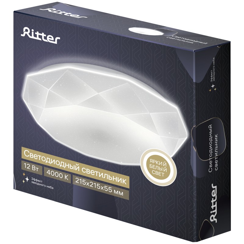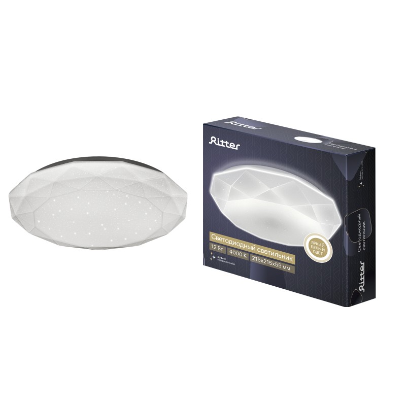 Наименование для 1С | Свет-к потолочный светодиодный, BRILLIANCE, Ø210х60мм 12Вт 4000К, 6м², белый, 52100 6, Ritter |