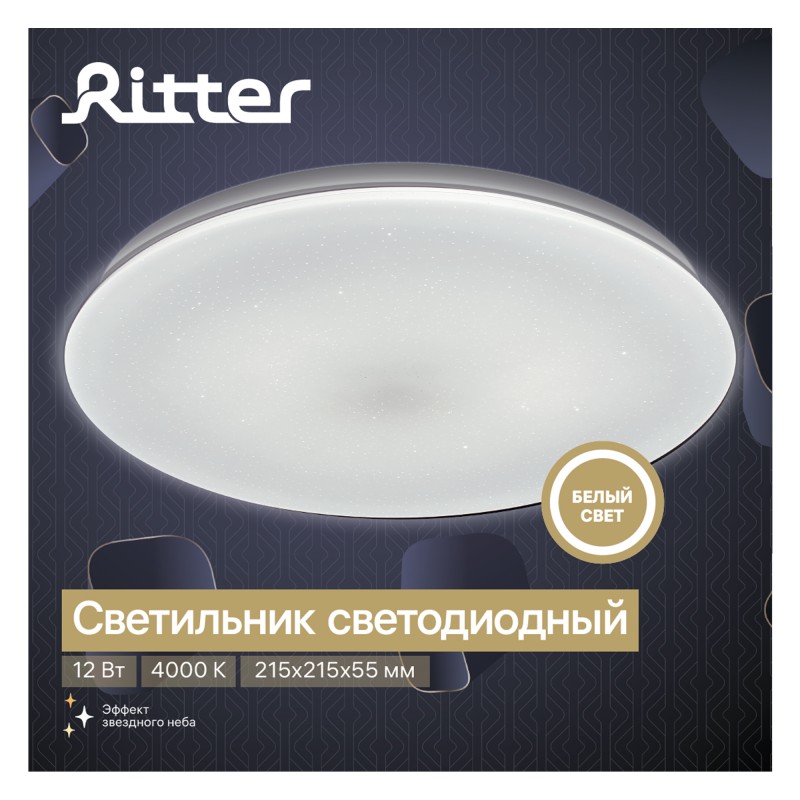 52184 6 Светильник потолочный светодиодный, STARDUST, Ø215х55мм, 12Вт, 4000К, 6м², белый, 52184 6, Ritter, 4008297521846