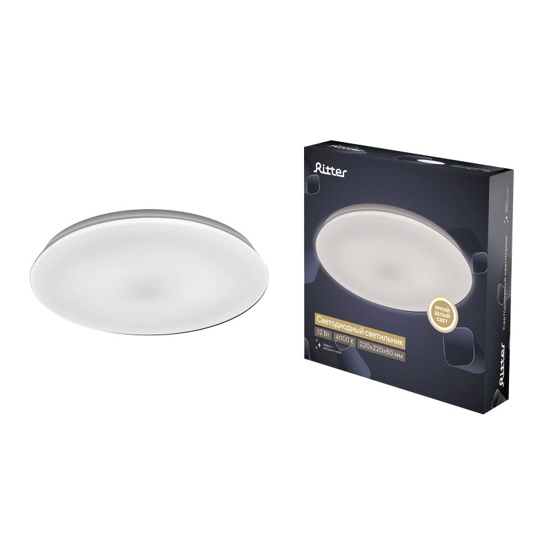 Наименование для 1С | Свет-к потолочный светодиодный, STARDUST, Ø215х55мм, 12Вт, 4000К, 6м², белый, 52184 6, Ritter |