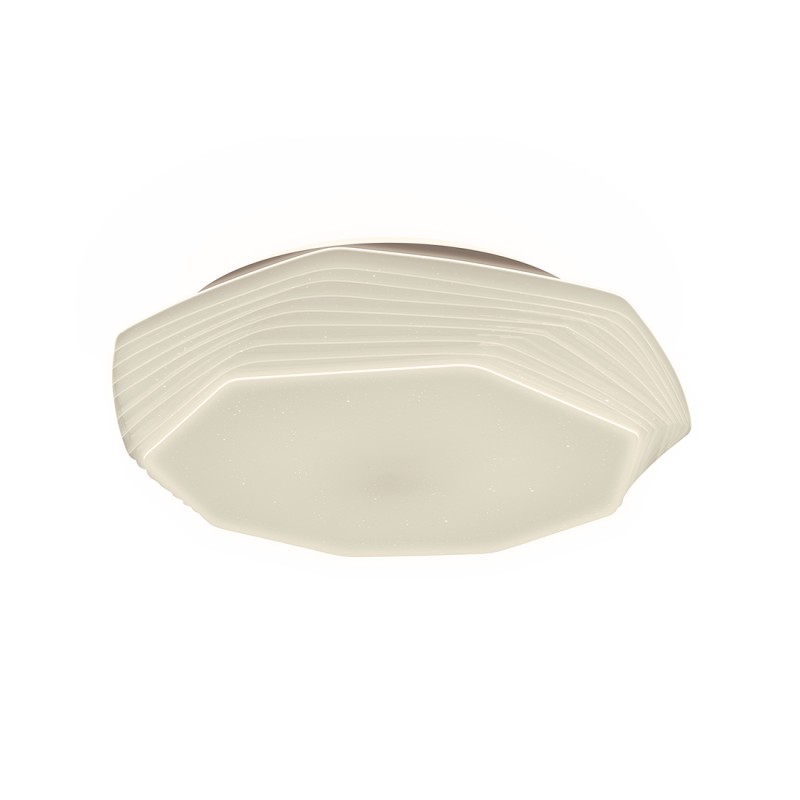 Корпус светильника – металлический, а круглый белый ПВХ плафон похож на идеальный огранённый алмаз. Светильник серии MIRA сконструирован в стиле минимализм и подойдёт для помещений в стиле лофт, сканди или хай-тек. Небольшая высота позволяет использовать светильник серии MIRA в невысоких помещениях, а дополнительная функция эффекта звёздного неба порадует ваших детей, и доставит удовольствие взрослым.