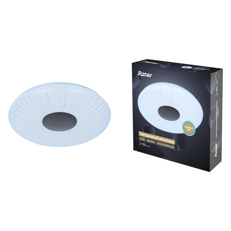 Наименование для 1С | Свет-к потолочный светодиодный, UNICA, Ø210х50мм, 12Вт, 6000К, 5м², белый, 52218 8, Ritter |