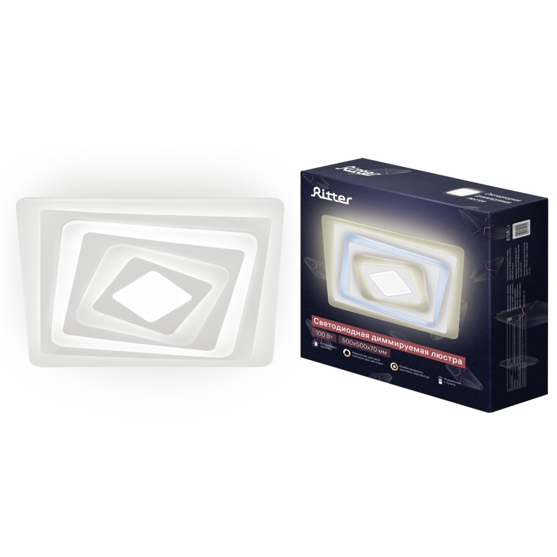 Наименование для 1С | Люстра потолочн светодиод диммир, TRAMPOLI ДУ 3 режима 500x500x80мм 100Вт 36м² белый 52224 9, Ritter |