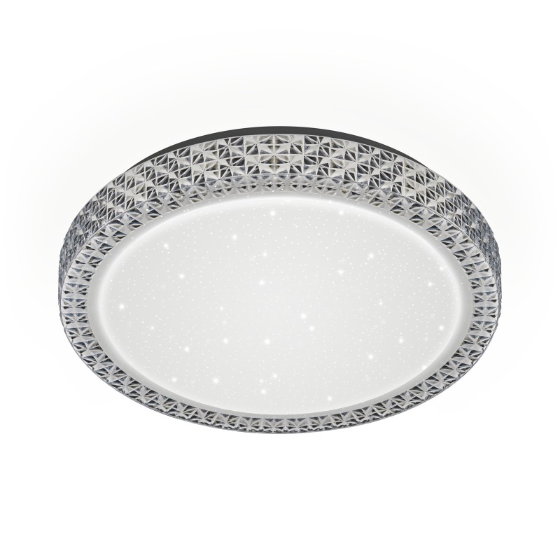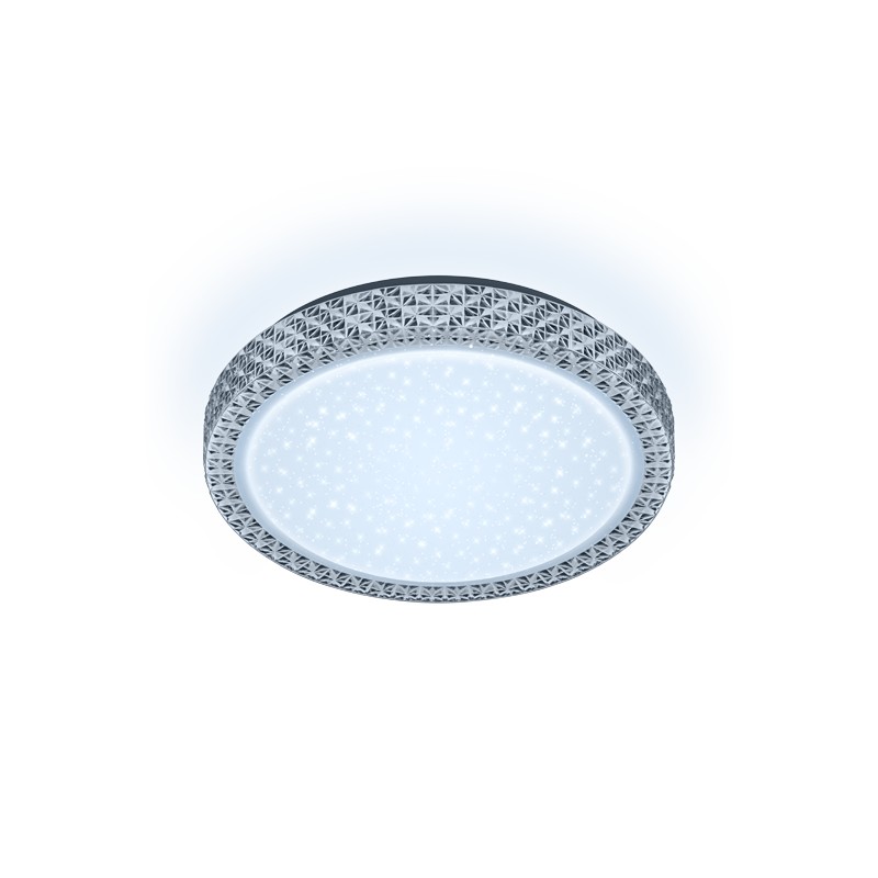 Регулировка яркости и цветовой температуры позволяет подстроить светильник под ваше настроение. Мягким тёплым, естественным дневным и холодным белым светом можно управлять с помощью кнопок на пульте, а дополнительное эстетическое удовольствие дарит эффект звёздного неба.
