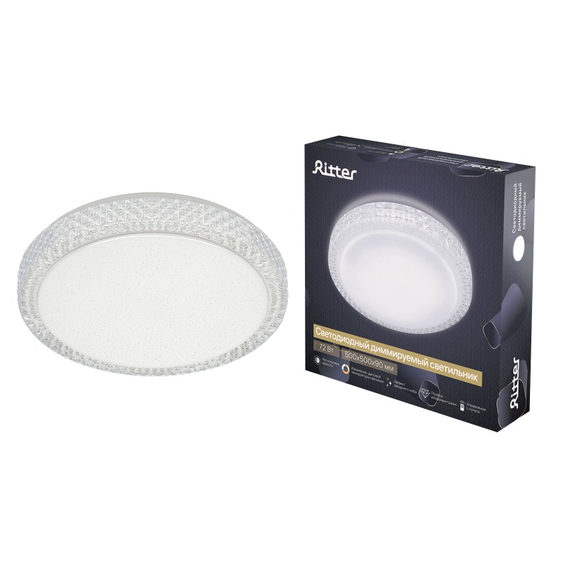 Наименование для 1С | Свет-к потолоч-й светодиодный дим-й, GALAXY, ДУ Ø500х90мм 72Вт 2700-6400К 30м² белый 52229 4, Ritter |
