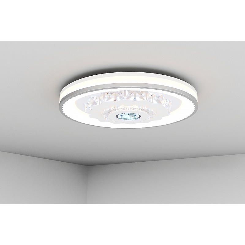 52368 0 Люстра потолочная светодиодная диммируемая, CRYSTAL 3D, с ДУ, 480х480х60мм, 120Вт, 40м², белый, 52368 0, Ritter, 4008297523680