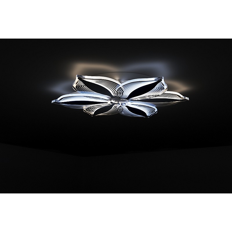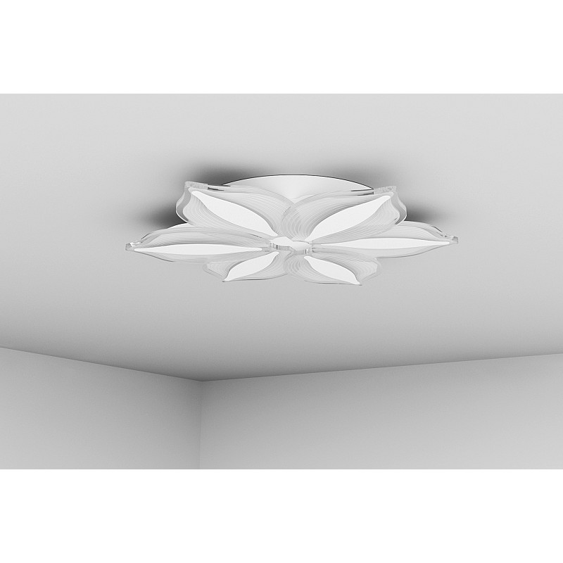 Плафоны люстры выполнены в виде лепестков из прозрачного белого акрила и напоминают нежный цветок, распустившийся на потолке вашей комнаты.