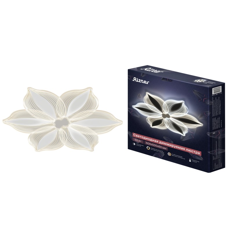 Наименование для 1С | Люстра потолочн светодиодн диммир, LUCINO, ДУ 3 режима 500х500х60мм 60Вт 26м² белый, 52380 2, Ritter |