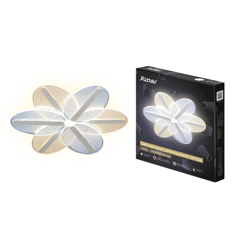 Наименование для 1С | Люстра потолочн светодиодн диммир, LUCINO, ДУ 3 режима 500х500х60мм 70Вт 26м² белый, 52382 6, Ritter |