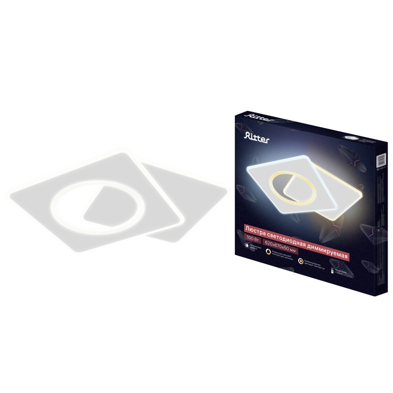 Наименование для 1С | Люстра потолоч светодиодная диммир BREZZO, ДУ 3 режима 670х620х50мм 100Вт 44м² белый 52390 1, Ritter |
